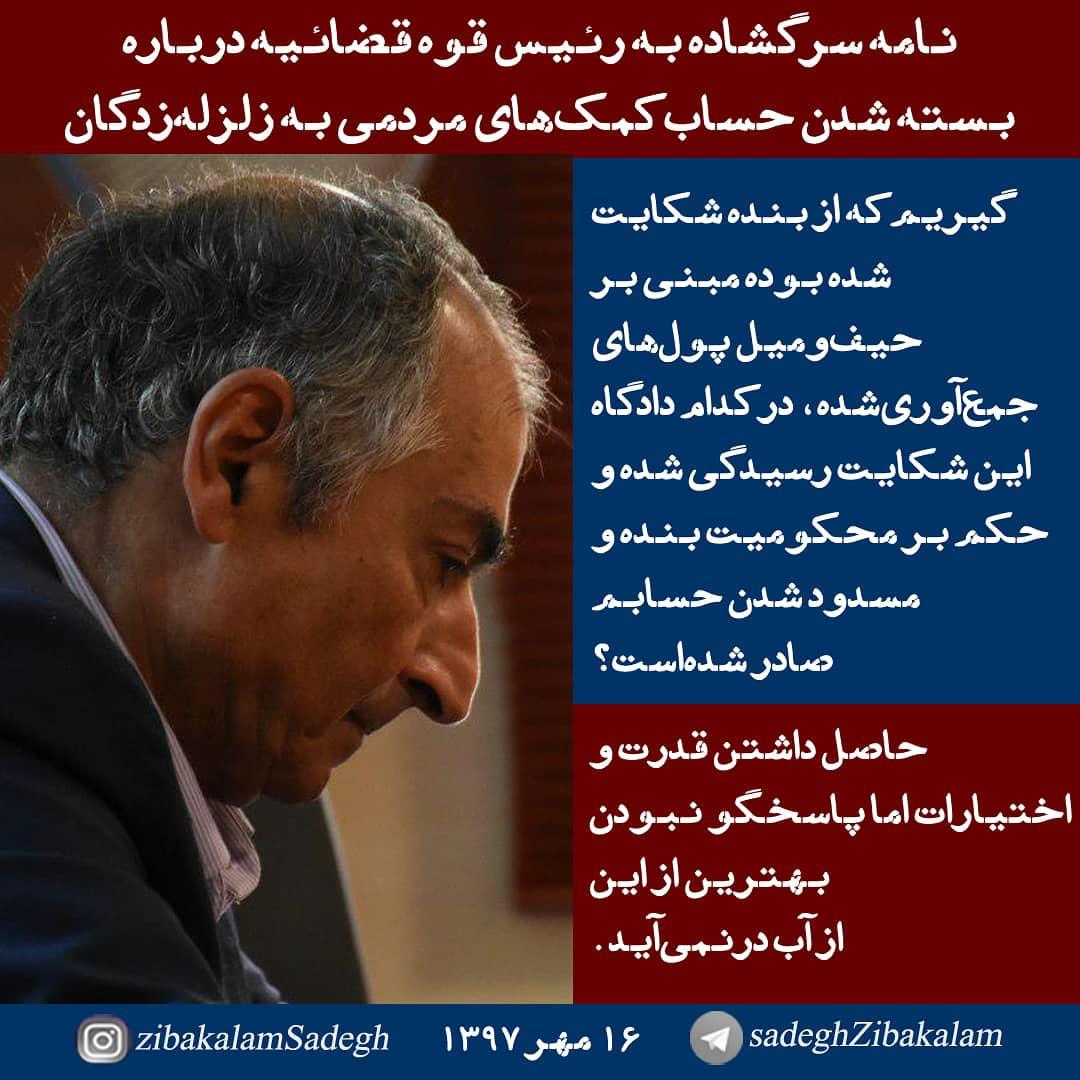 اندیشه قصرشیرین " موضوع: بسته شدن حساب کمکهای مردمی به زلزلهزدگان