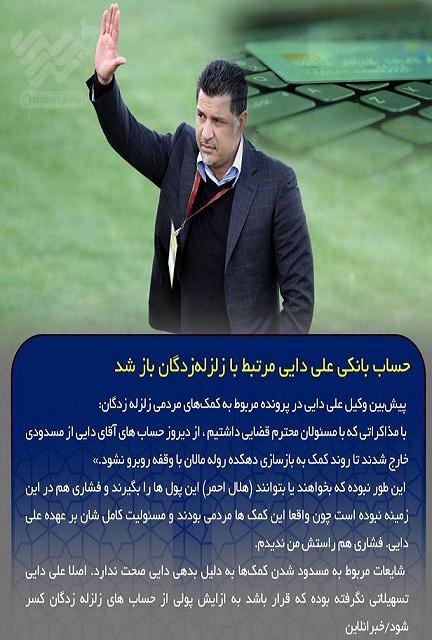 با مذاکراتی که با مسئولان محترم قضایی داشتیم ، از دیروز حساب های آقای دایی از مسدودی خارج شدند تا روند کمک به بازسازی دهکده روله مالان با وقفه روبرو نشود.»