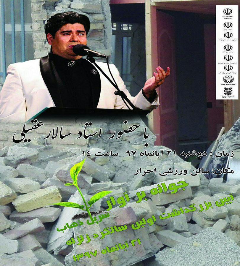 اندیشه قصرشیرین " سالار عقیلی هنرمند محبوب در سرپلذهاب به یاد جانباختگان زلزله آبان ۹۶ در اولین سالگرد این حادثه غم انگیز می خواند.